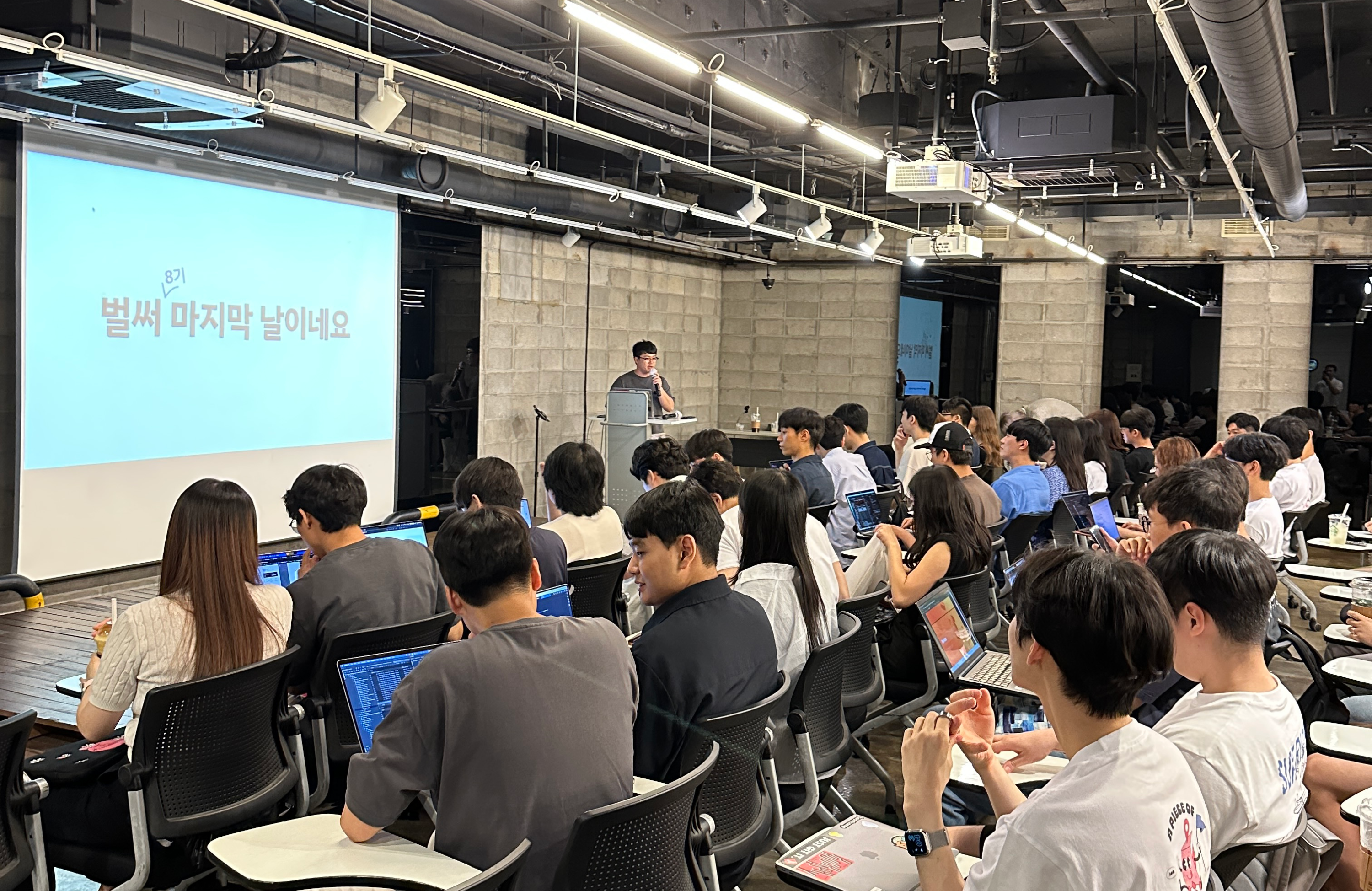 또한, 7월에는 '스타트업 데이' 시간을 통해 다양한 스타트업에서 참가하여 본인들의 서비스를 소개하고, 프로그라피 8기 인원들이 고민하고 있는 것들에 대해 함께 이야기해보거나, 회사의 채용과 연계된 이야기를 해보는 시간을 가졌습니다.